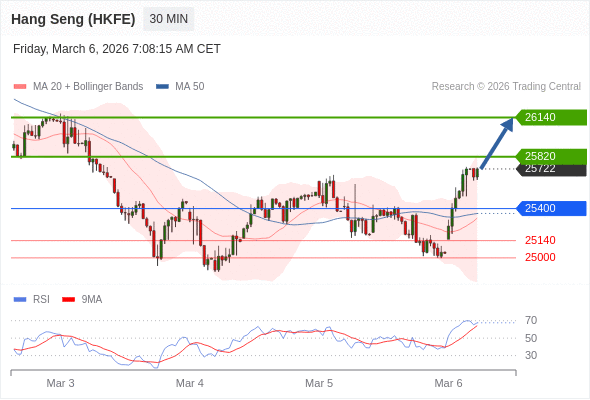 在 25400 之上,看涨,目标价位为 25820 ,然后为 26140 。