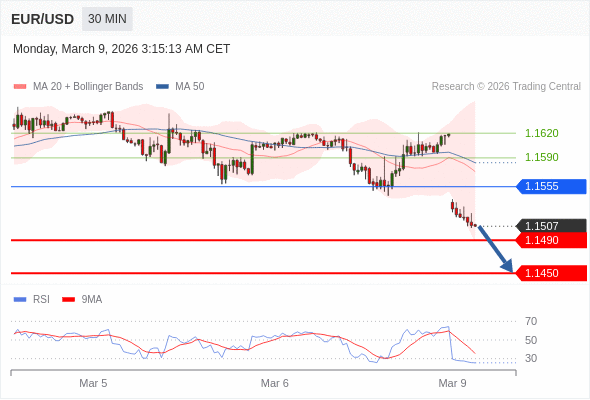 在 1.1555 之下,看跌,目标价位为 1.1490 ,然后为 1.1450 。