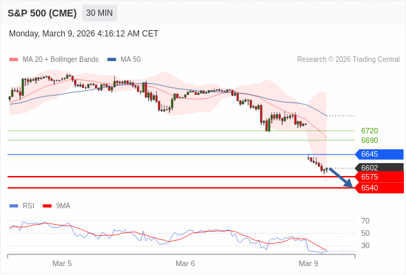 在 6645 之下,看跌,目标价位为 6575 ,然后为 6540 。