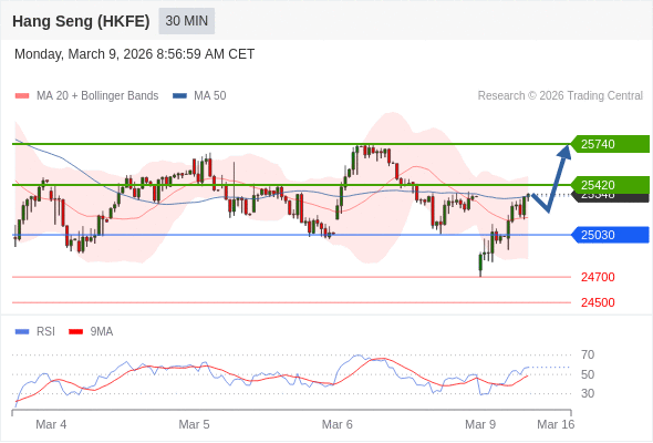 在 25030 之上,看涨,目标价位为 25420 ,然后为 25740 。