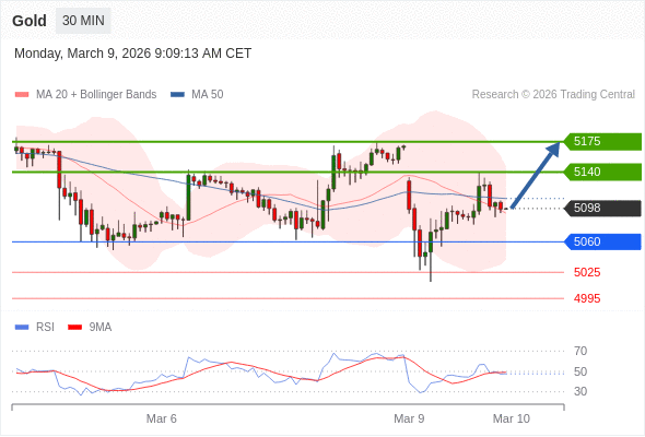 在 5060 之上,看涨,目标价位为 5140 ,然后为 5175 。