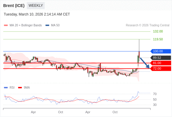 交易策略: 在 100.00 之下,看跌,目标价位为 81.00 ,然后为 72.00 。