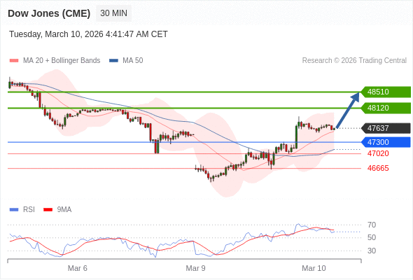 在 47300 之上,看涨,目标价位为 48120 ,然后为 48510 。