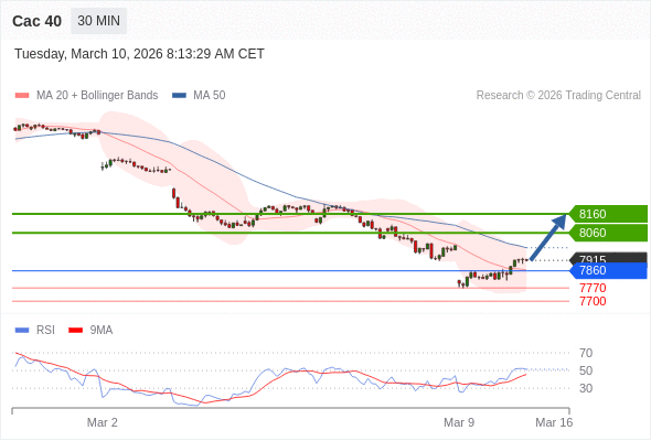 Cac 40 当日内: 上升空间有限。
