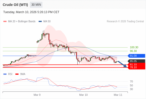 交易策略: 在 91.00 之下,看跌,目标价位为 81.10 ,然后为 78.10 。