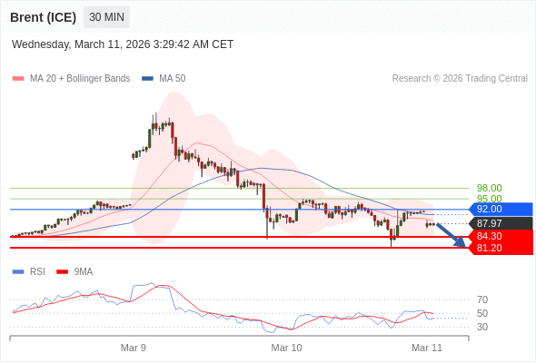 交易策略: 在 92.00 之下,看跌,目标价位为 84.30 ,然后为 81.20 。