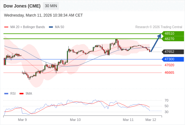 在 47300 之上,看涨,目标价位为 48270 ,然后为 48510 。
