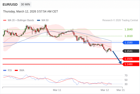 在 1.1580 之下,看跌,目标价位为 1.1505 ,然后为 1.1480 。