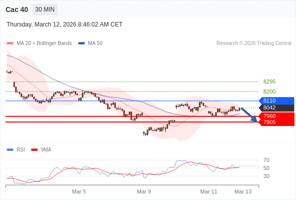 Cac 40 当日内: 存在压力。