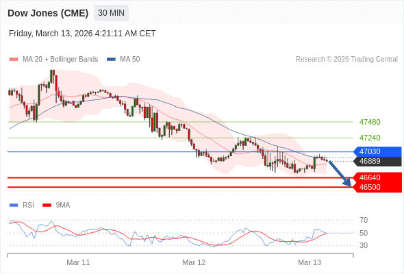在 47030 之下,看跌,目标价位为 46640 ,然后为 46500 。