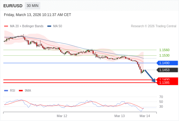 在 1.1490 之下,看跌,目标价位为 1.1400 ,然后为 1.1385 。