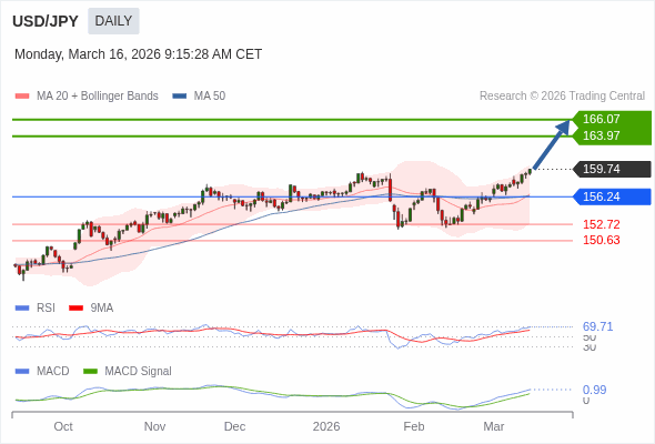 美元/日元 短线 : 看涨,当 156.24 为支撑位。