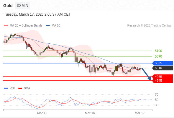 在 5035 之下,看跌,目标价位为 4965 ,然后为 4945 。
