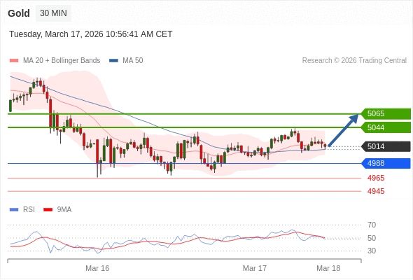 在 4988 之上,看涨,目标价位为 5044 ,然后为 5065 。