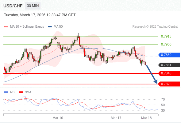 在 0.7880 之下,看跌,目标价位为 0.7845 ,然后为 0.7825 。