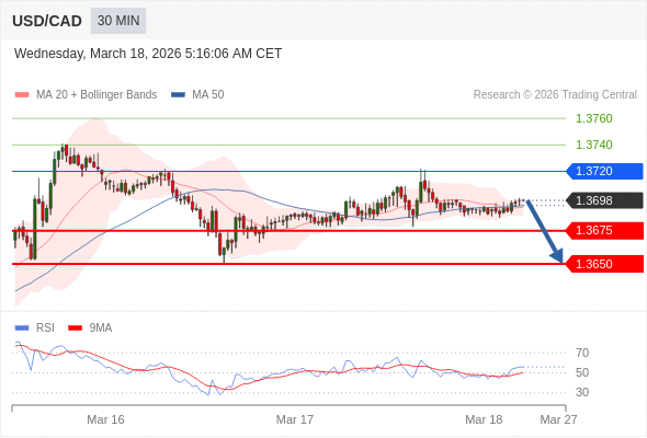 美元/加元 当日内: 期待1.3675。