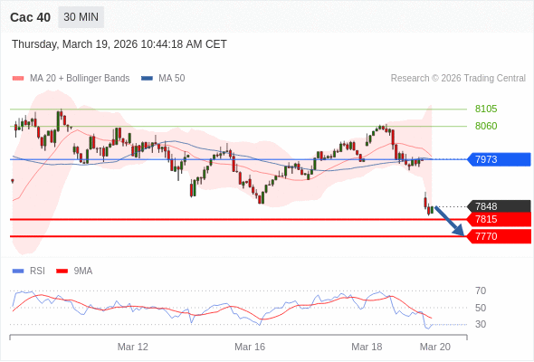Cac 40 当日内: 存在压力。