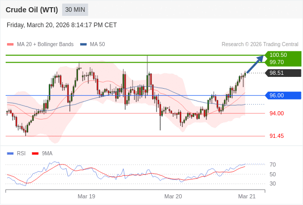 在 96.00 之上,看涨,目标价位为 99.70 ,然后为 100.50 。