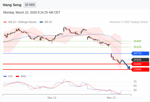 技术点评: 只要24770阻力位不被突破,向下跌破24200位置的风险很高。