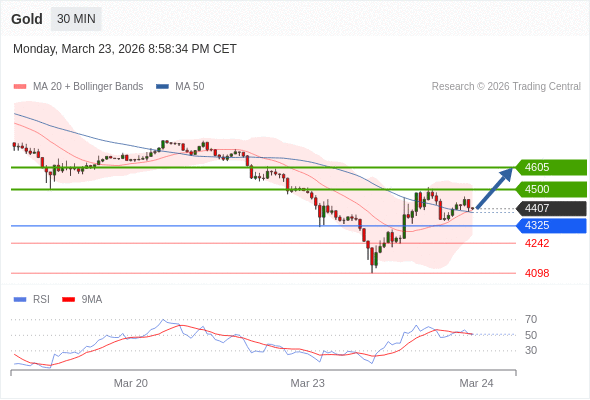 在 4325 之上,看涨,目标价位为 4500 ,然后为 4605 。