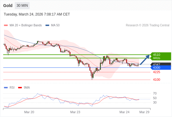 在 4300 之上,看涨,目标价位为 4455 ,然后为 4510 。