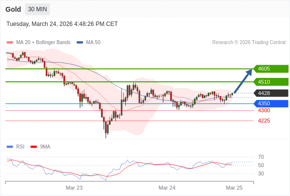 在 4350 之上,看涨,目标价位为 4510 ,然后为 4605 。