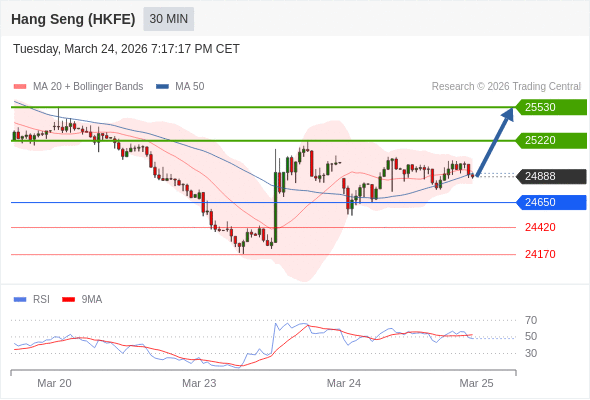 在 24650 之上,看涨,目标价位为 25220 ,然后为 25530 。