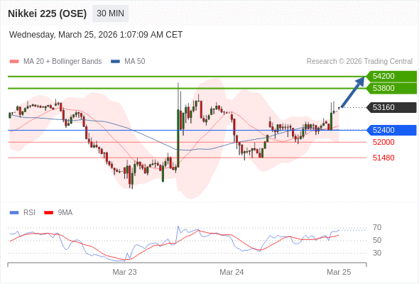 交易策略: 在 52400 之上,看涨,目标价位为 53800 ,然后为 54200 。