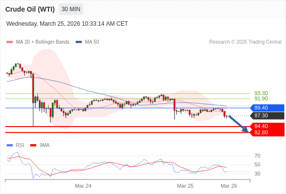 在 89.40 之下,看跌,目标价位为 84.40 ,然后为 82.80 。