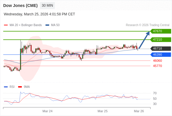 在 46390 之上,看涨,目标价位为 47210 ,然后为 47670 。