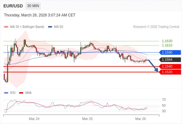 交易策略: 在 1.1590 之下,看跌,目标价位为 1.1540 ,然后为 1.1520 。