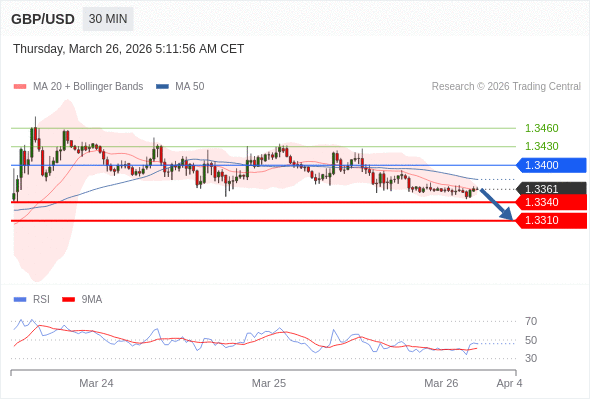 在 1.3400 之下,看跌,目标价位为 1.3340 ,然后为 1.3310 。
