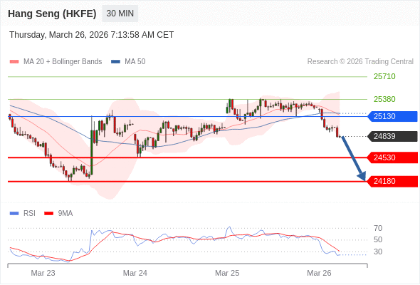 交易策略: 在 25130 之下,看跌,目标价位为 24530 ,然后为 24180 。