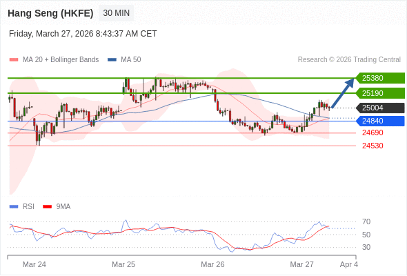 在 24840 之上,看涨,目标价位为 25190 ,然后为 25380 。