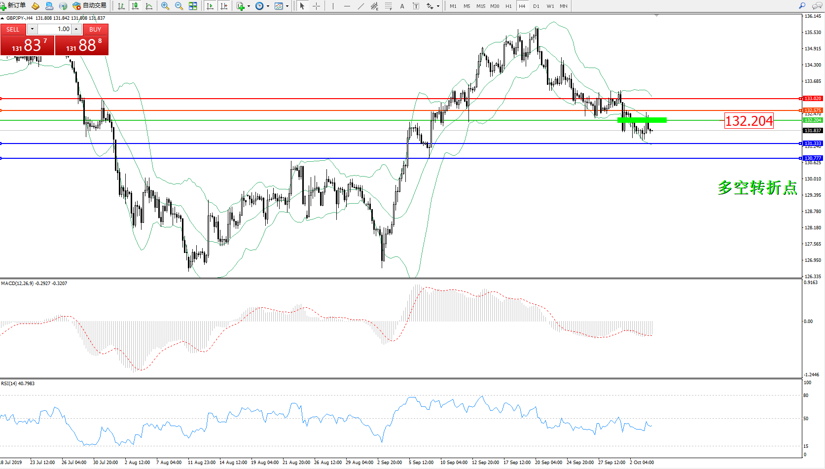 交易策略:132.204下方看跌,目标131.333130.777