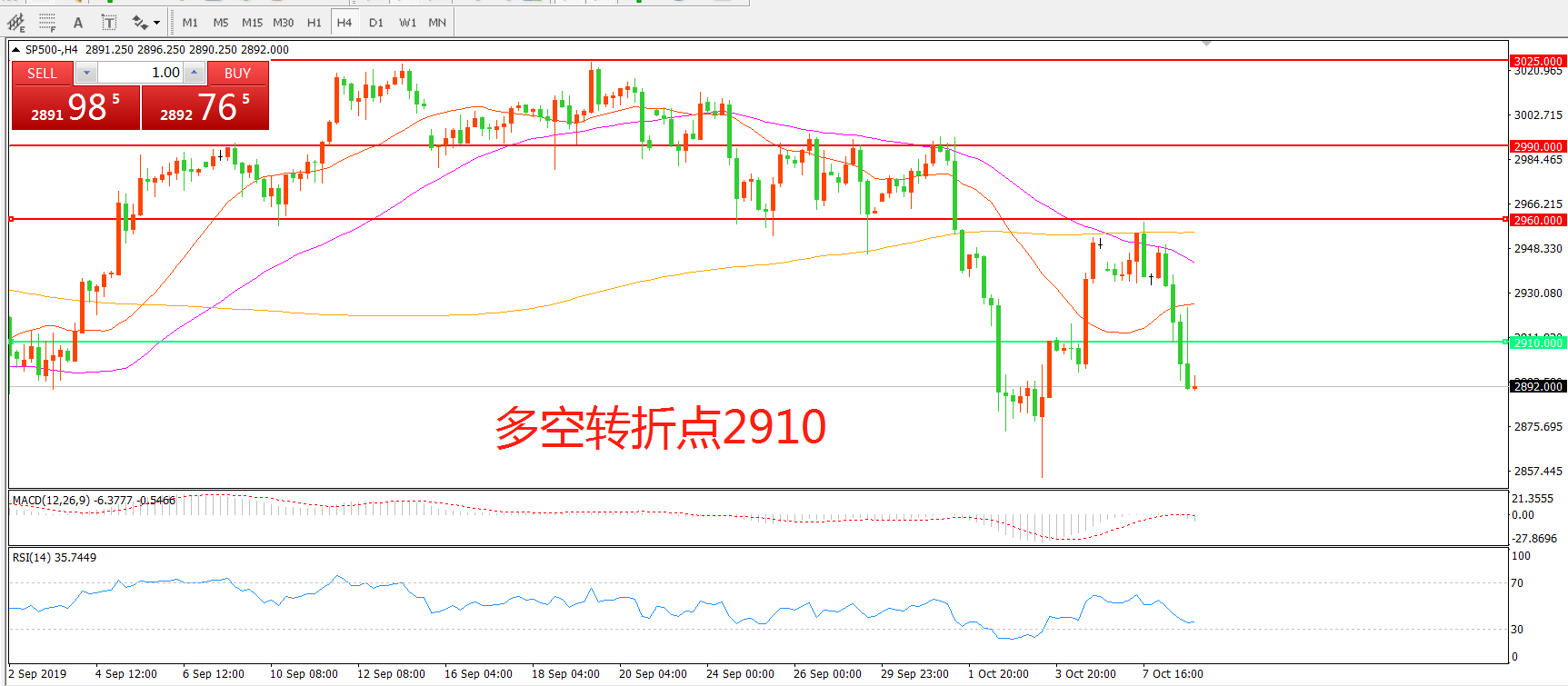 多空转折点:2910.00