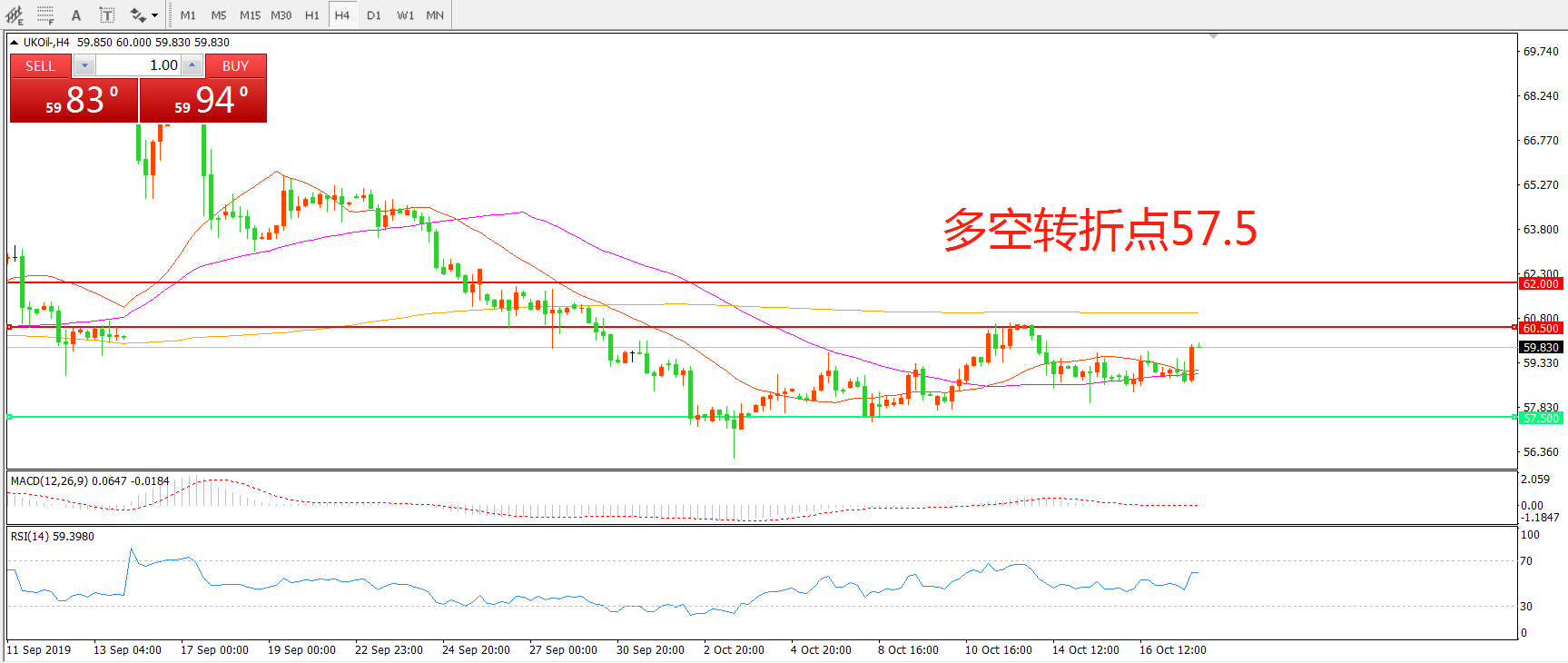 多空转折点:57.50