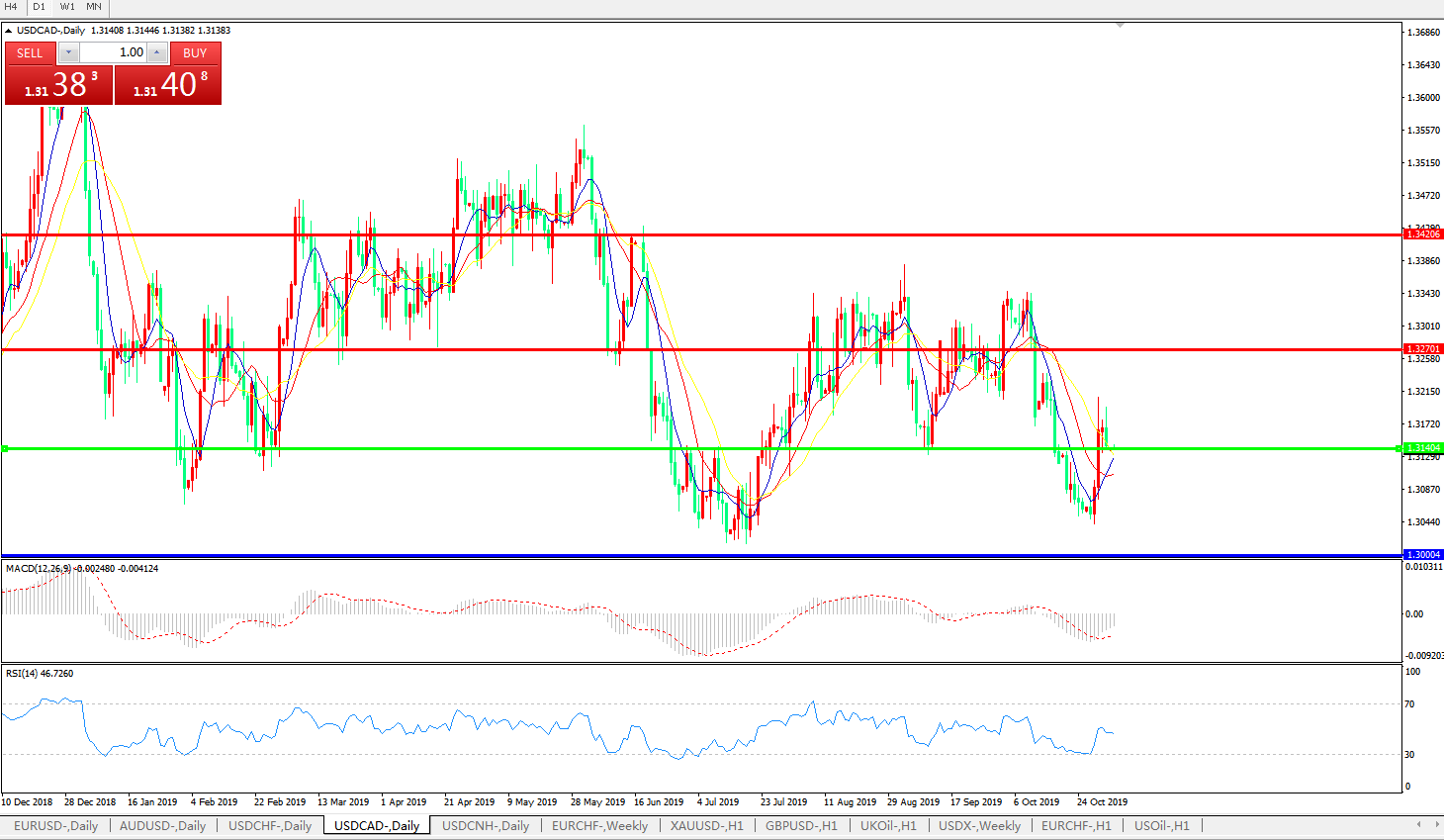 美元兑加元USDCAD 日线图: