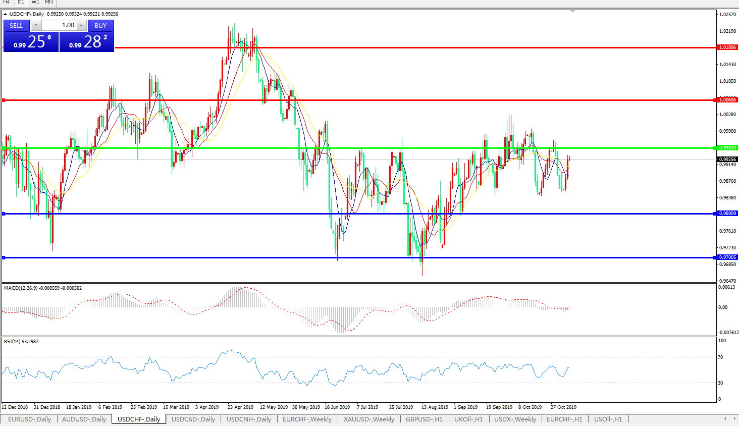 交易策略:0.9950下方看跌,目标0.98000.9700