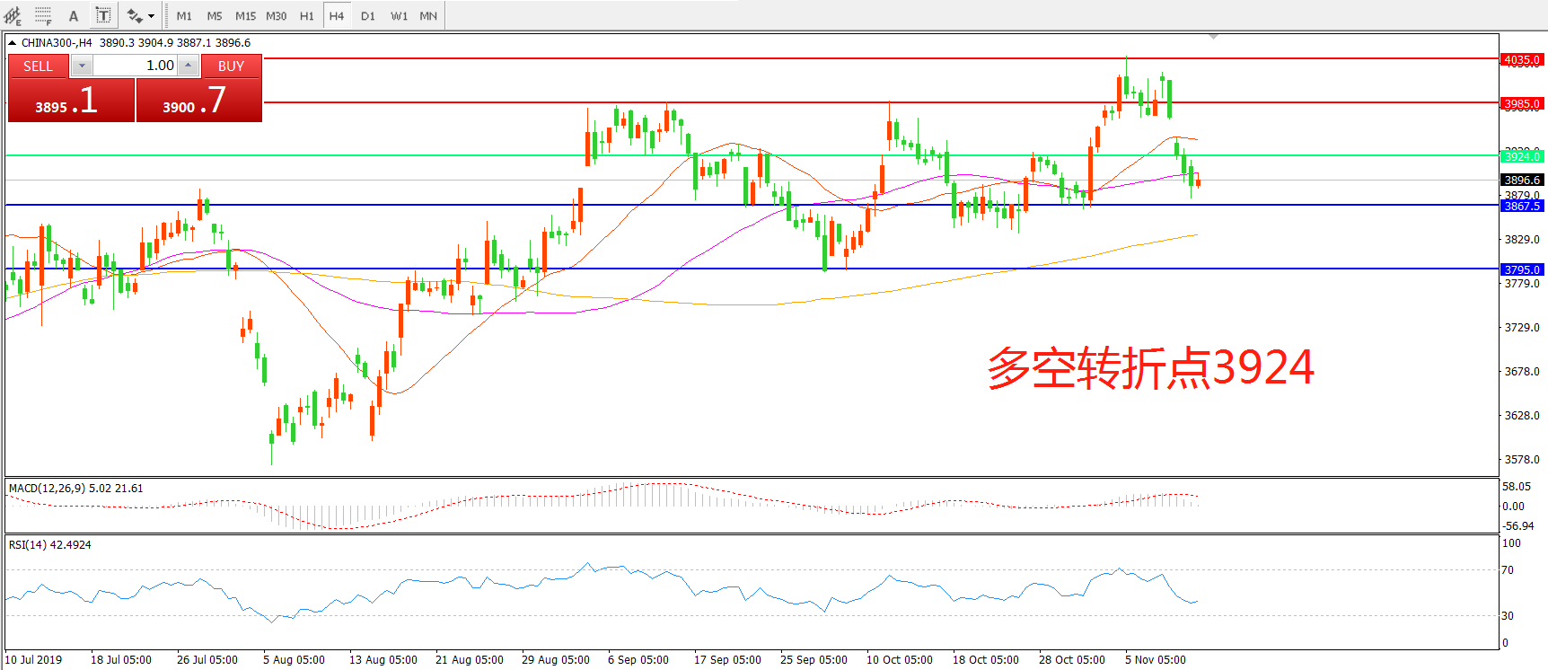 沪深300指数CHINA300 4小时图