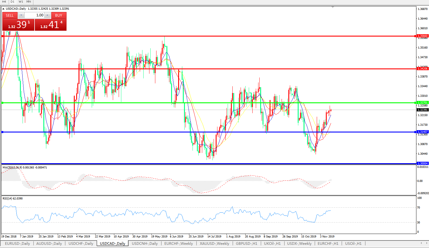 美元兑加元USDCAD    日线图: