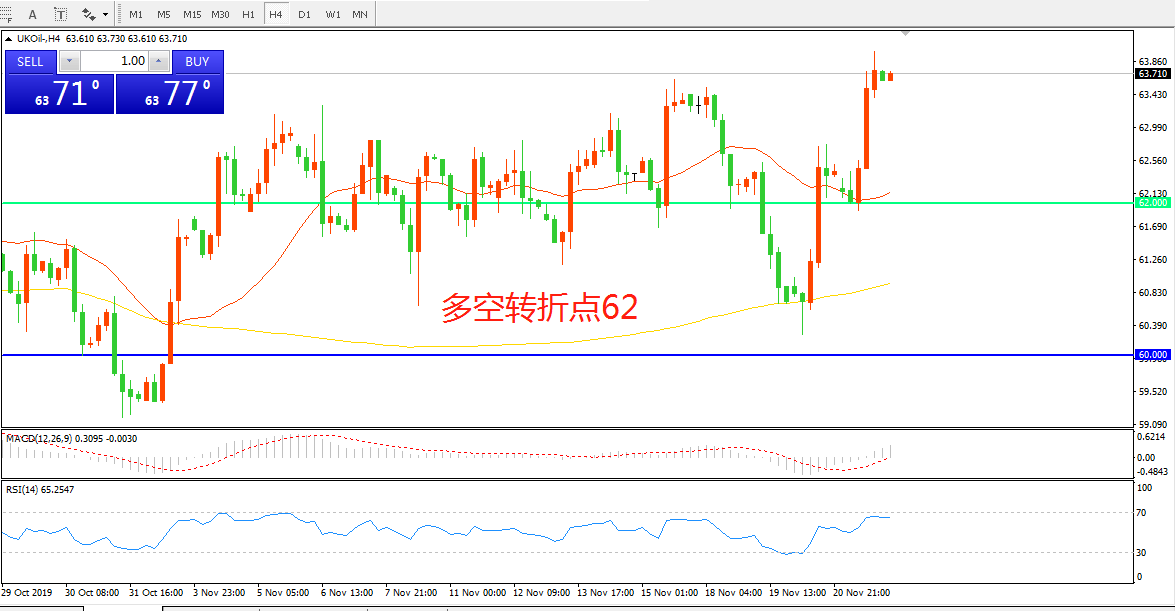 交易策略:在62.00之上看涨,目标64.50     66.00
