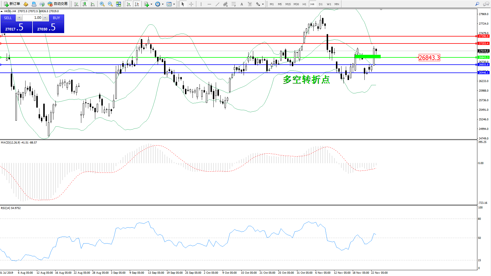 恒指HK50 ——4小时K线图显示: