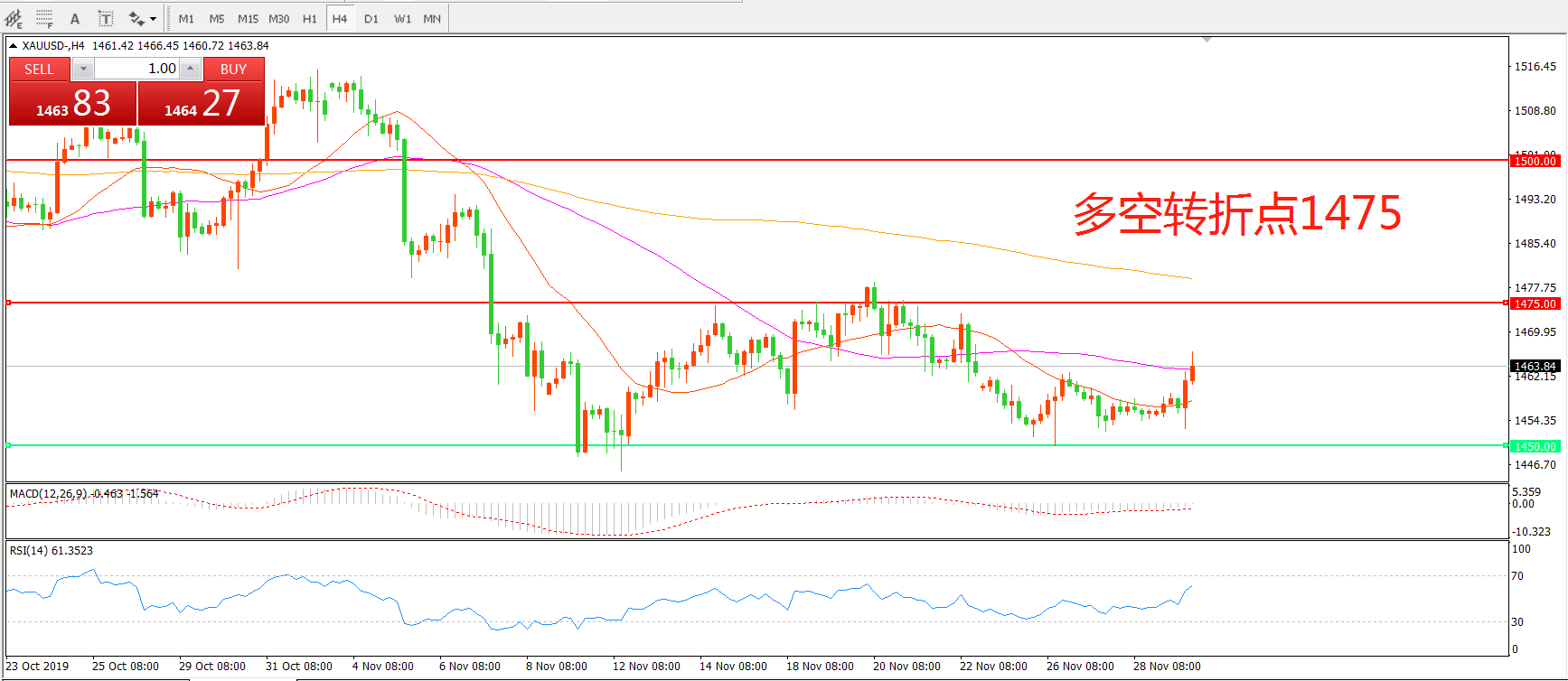 交易策略:在1450.00之上看涨,目标1475.00 1500.00