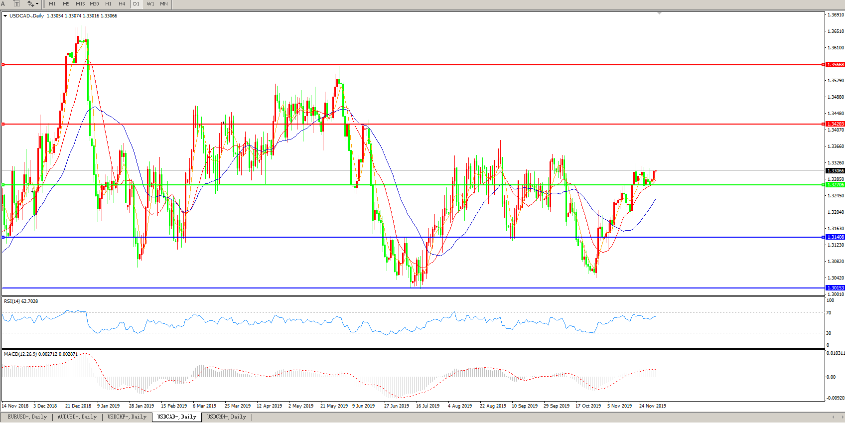 美元兑加元USDCAD 日线图: