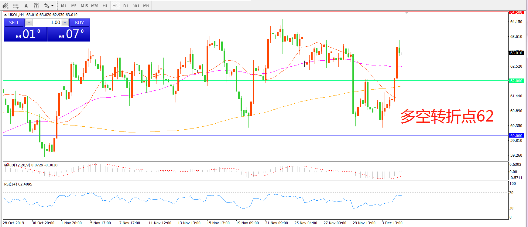 交易策略:在62.00之上看涨,目标64.50 66.00