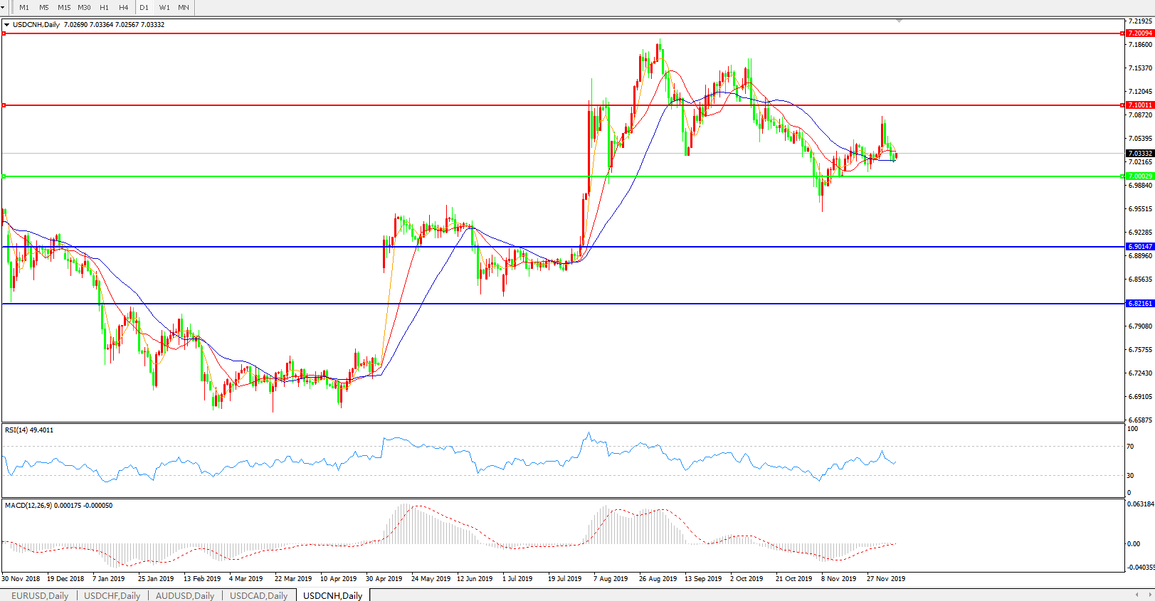 交易策略: 在7.0000之上,看涨,目标价位为7.1000,然后为7.2000。