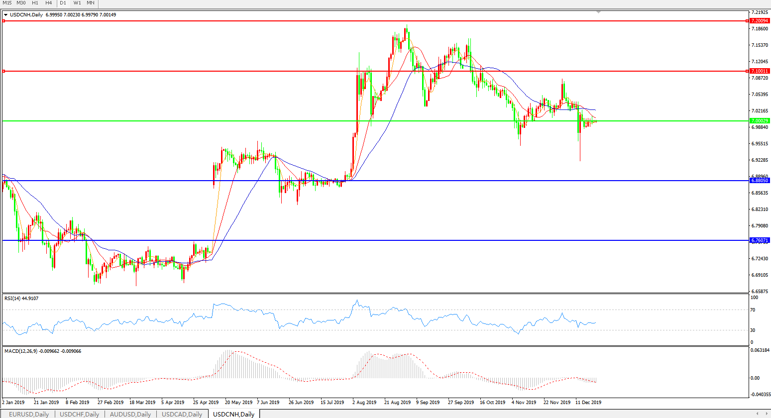 交易策略: 在7.0000之下,看跌,目标价位为6.8805,然后为6.7600。
