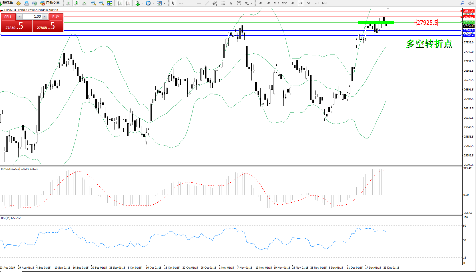 恒指HK50 ——4小时K线图显示: