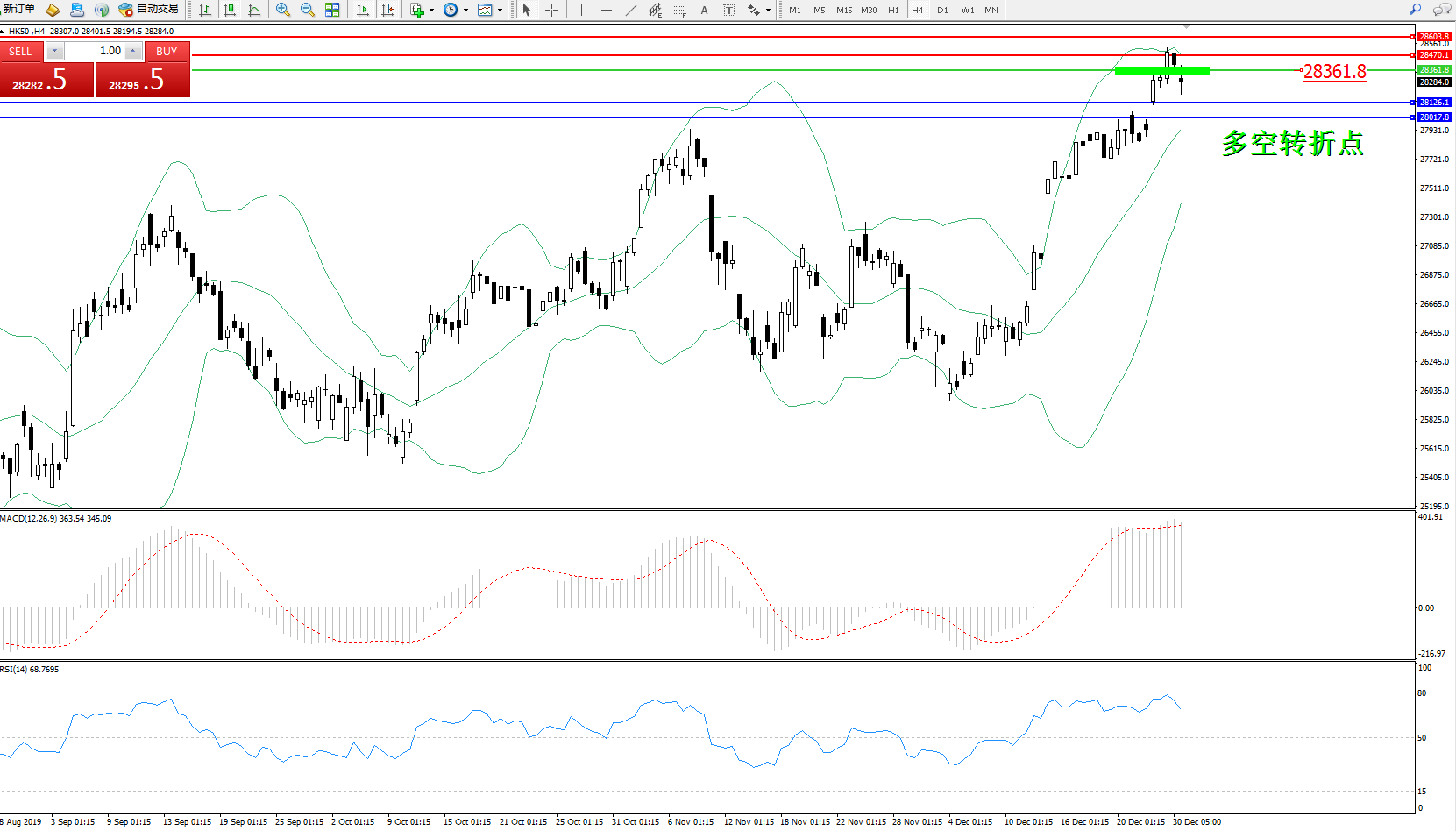 恒指HK50 ——4小时K线图显示: